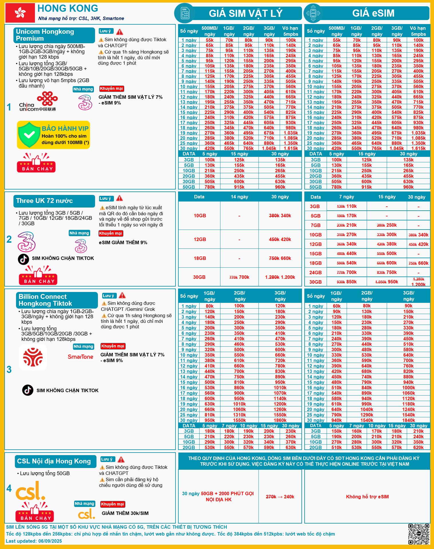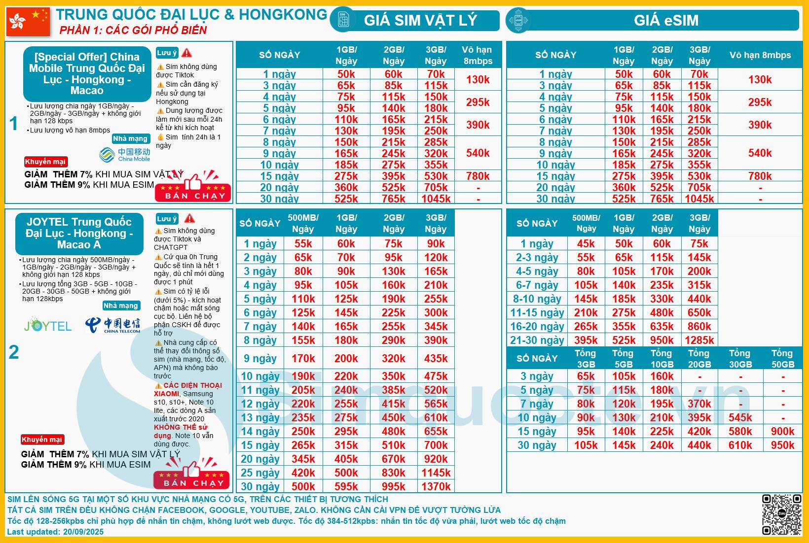 Bảng Tổng Hợp Sim và eSIM Hongkong