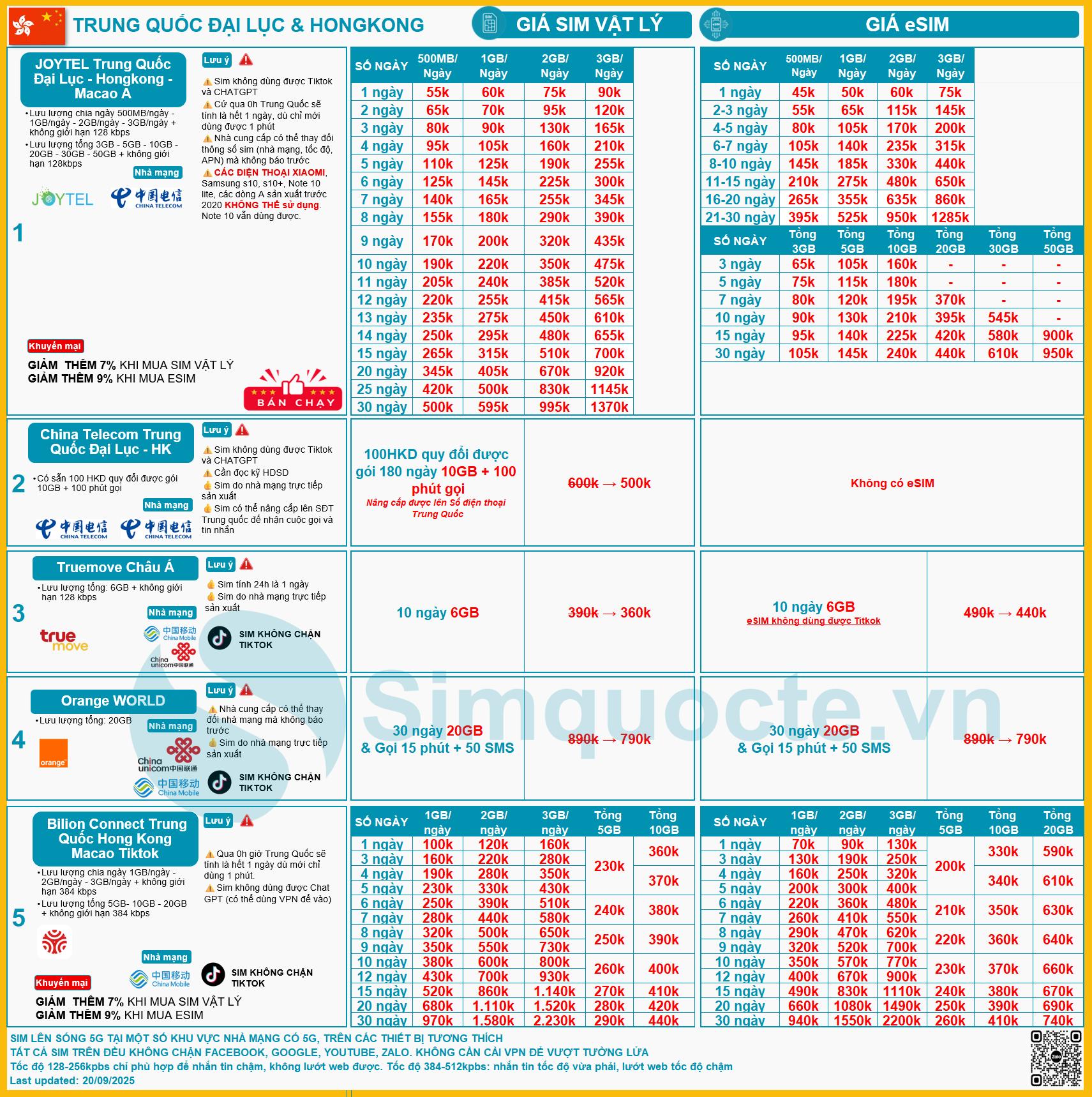 Tìm Sim & eSIM Trung Quốc - Hongkong - Macao tốt nhất theo Số ngày đi hoặc Lịch trình của bạn
